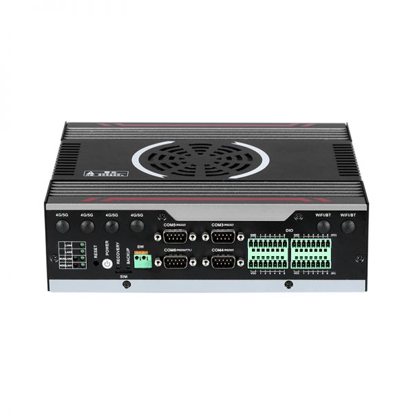 外觀時尚 : 鋁合金一體成型,結構緊湊小巧,工藝精細,科技時尚高性能 : 支持12代LGA1700英特爾® 酷睿 I5-12400,TDP 65W穩定可靠 : 純工業設計,機箱散熱風扇,優良的散熱結構,全密封鋁合金箱體,大面積鋁鰭散熱;機箱可抗接觸式6KV強電磁干擾,標配DC24V輸入,可選DC12V-28V寬壓輸入接口豐富 :1*HDMI,2*DP,2*LAN(Intel),4*COM,4*USB3.2,2*USB2.0,1*遠程開關,6*GPIO(自定義),1*2.5寸硬盤位,1*M.2 (Key M, 2242,支持SATA),擴展插槽1* M.2 (Key M, 2242/2260/2280 PCIe x4 ),1*M.2 (Key E, 2230 支持WiFi),1* M.2 (Key B, 3042/3052支持4G/5G) ,1*Line-Out,1*MIC-in